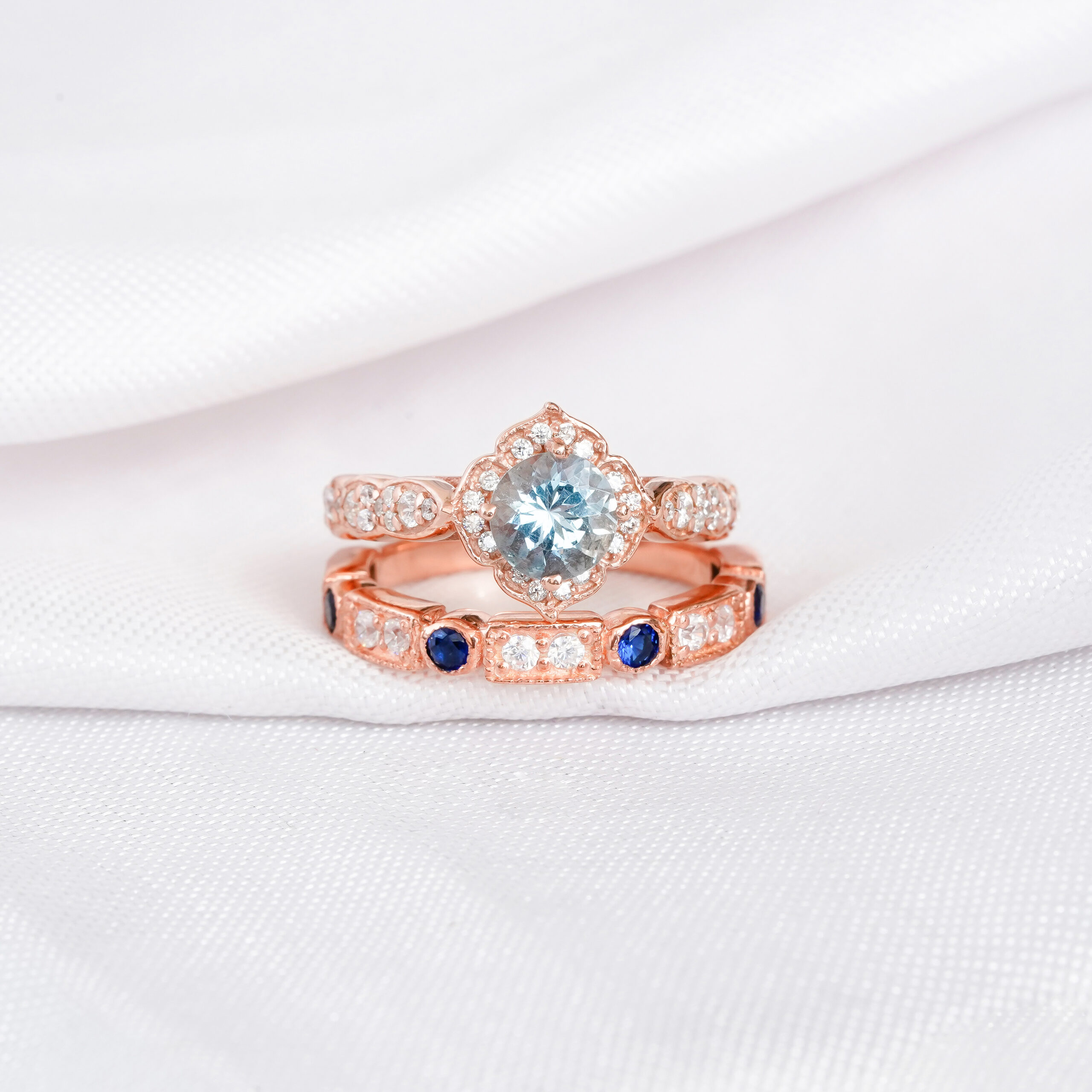 Aquamarine Engagement Ring Set For Women - Image 2