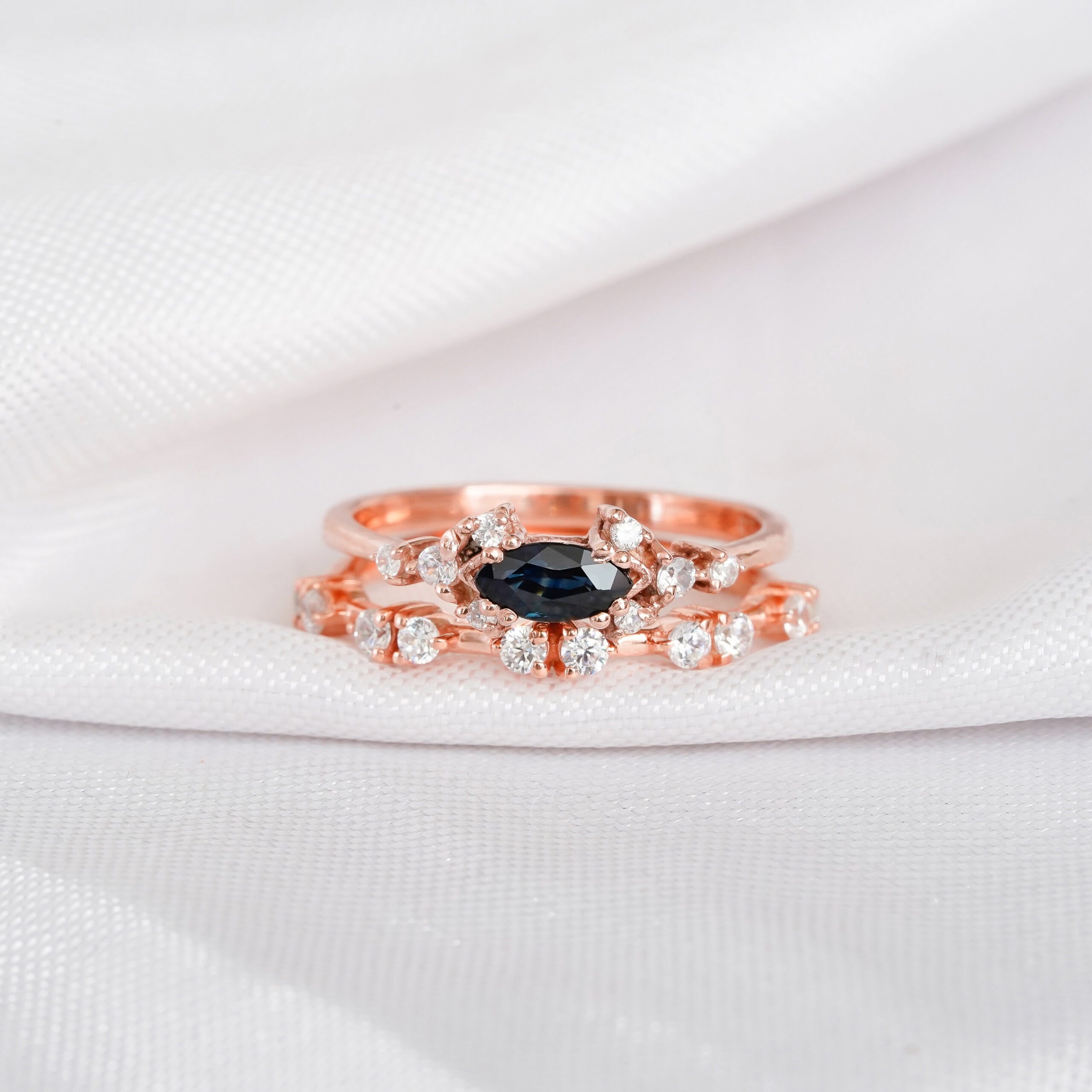 Blue Sapphire Engagement Ring Set For Women