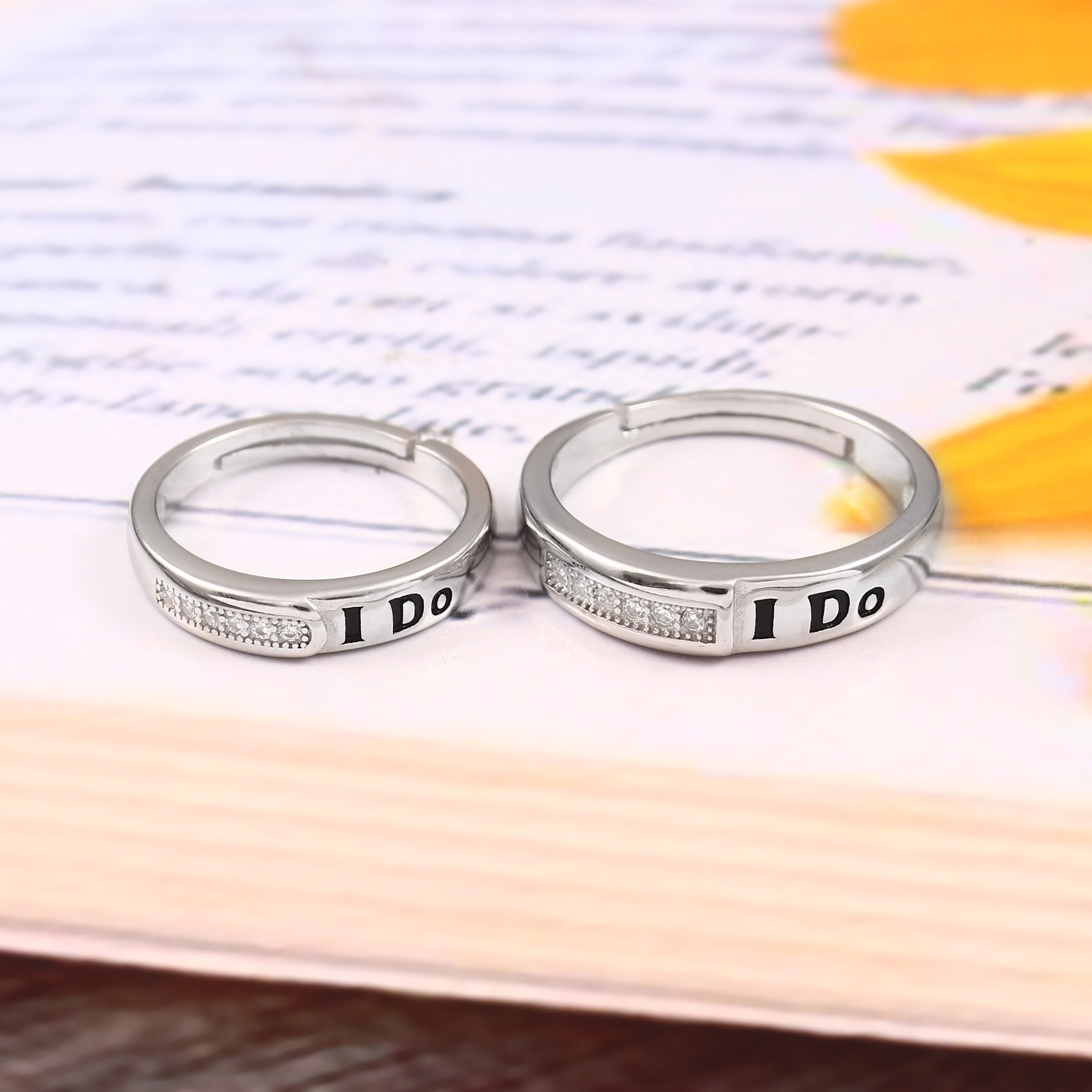 I Do Words Couple Bands His And Hers Ring Set Unique Couple Promise Rings Adjustable Wedding Anniversary Bands Same Rings for Love Couple
