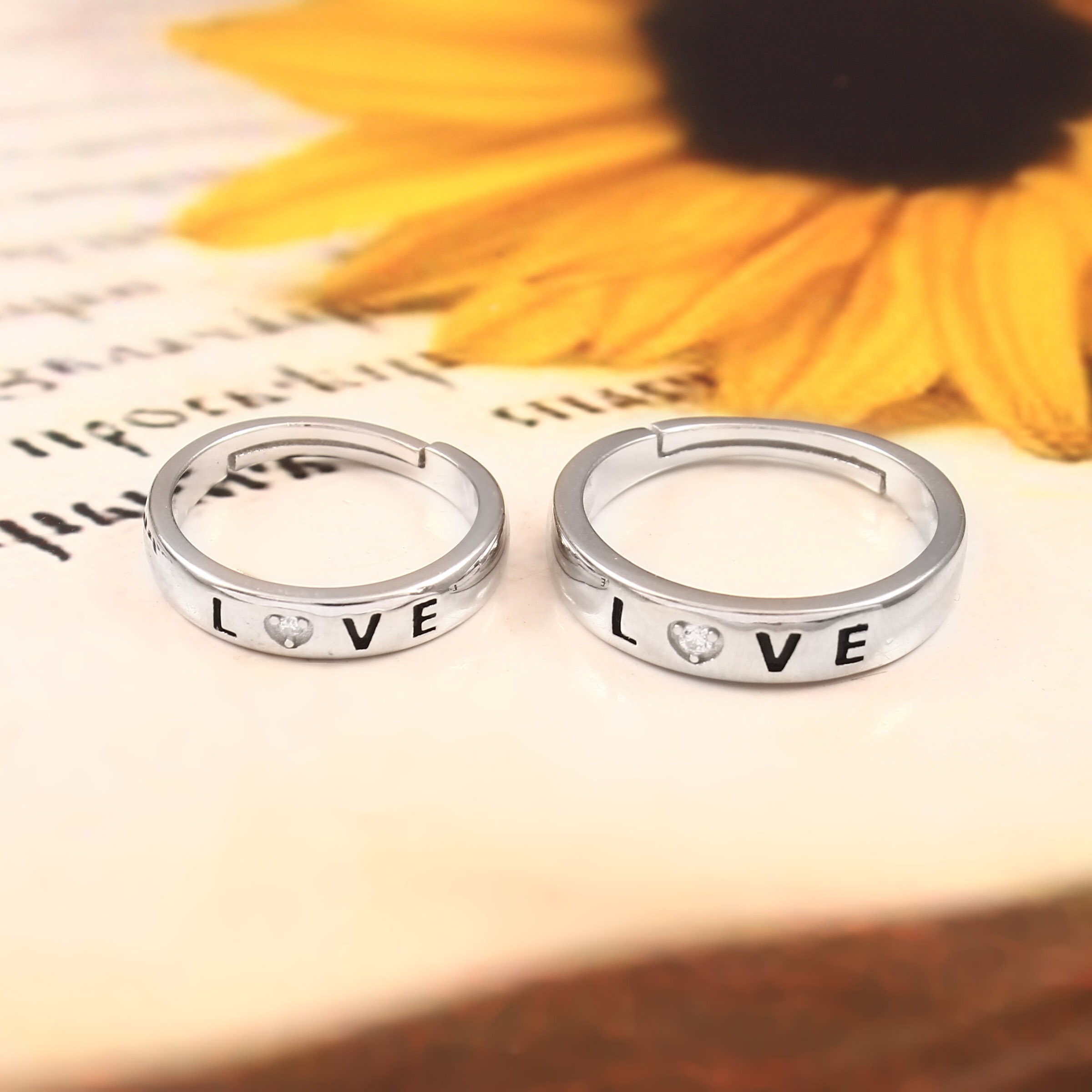 Love Word Couple Bands His And Hers Ring Set Unique Couple Promise Rings Adjustable Wedding Anniversary Bands Same Rings for Love Couple