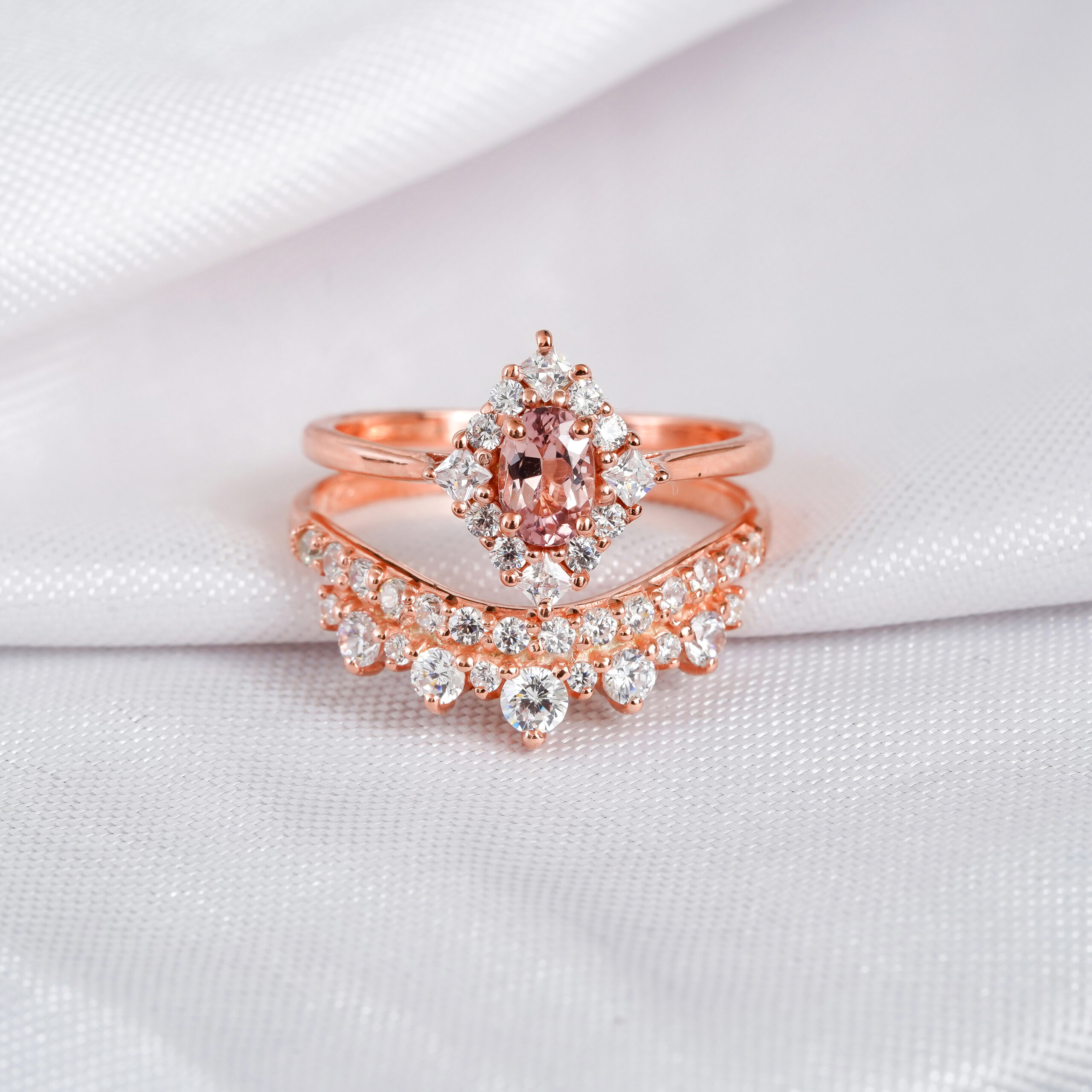 Morganite Engagement Ring Set For Women